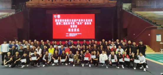 公司副经理郭西魁和青年教师廖建发等两位红拳传人参加了本次活动,通过技术学习和短兵对抗考核,两位老师均取得了红拳“短兵”教练员资格证书。