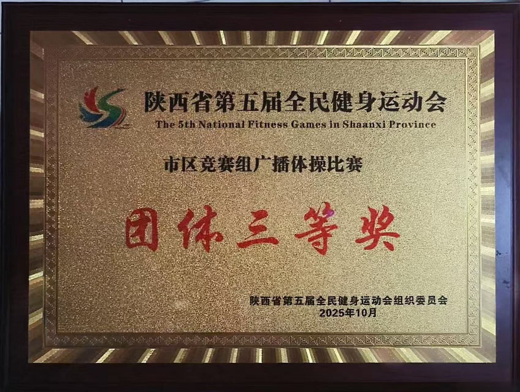 10月13日晚上,由陕西省人民政府主办的陕西省第五届全民健身运动会暨2025年陕西省群众体育赛事五级联赛广播比赛(省级总决赛)在商洛市望江楼广场圆满落幕,公司师生组成的安康市代表队斩获广播体操比赛团体三等奖。