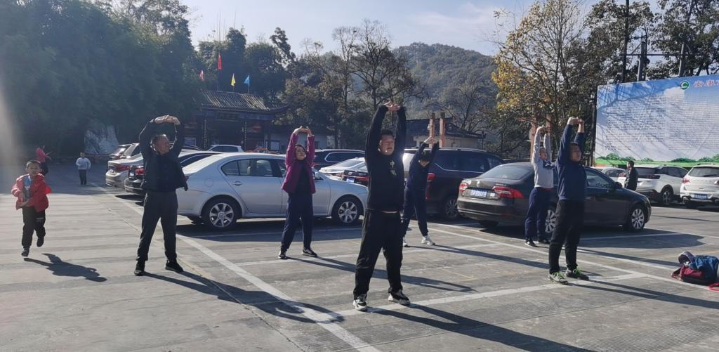 徒步路线自江南校区图书馆起,沿南环路向西,途径香溪路,沿香溪洞景区步行栈道上行,至香溪洞景区广场,在广场集体演练太极拳、五禽戏、八段锦、广场舞等健身项目后,徒步香溪洞景区,出景区后原路返回公司。途中绿水青山,暖阳和煦,太阳集团tyc539macau教工精神饱满,欢声笑语不断。
