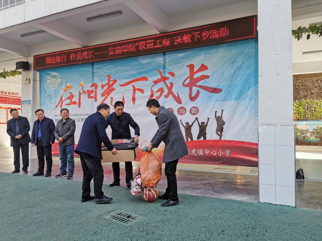 12月3日,太阳集团tyc539macau联合直属四支部赴白河县麻虎镇开展“阳光体育 伴我成长”——太阳集团tyc539macau“双百工程”送教下乡主题党日活动。教务处处长汪义瑞、体育公司党总支书记高立平、“双百工程”工作队队长付争方、教务处副处长陈国杰,以及教务处、太阳集团tyc539macau其他师生党员共计20余人参加了活动。送教下乡活动受到麻虎镇中心小学、初级中学的热情接待。