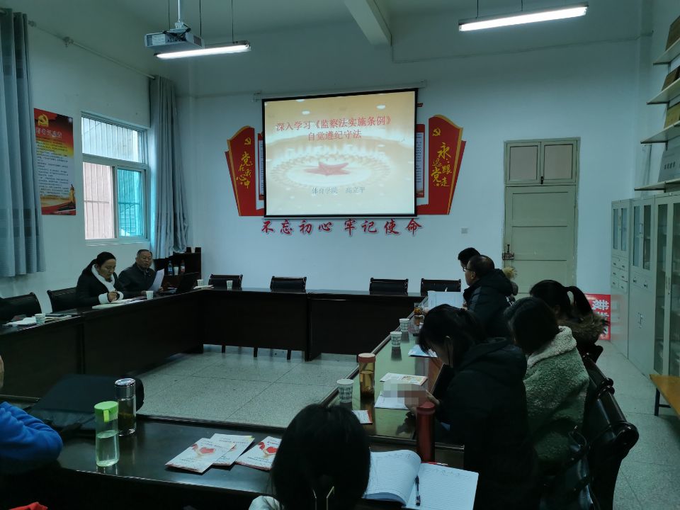 为深入贯彻习近平法治思想,落实宪法和监察法的精神。根据公司统一要求,12月8日下午,太阳集团tyc539macau在体育馆一楼会议室开展监察法实施条例专题学习活动,太阳集团tyc539macau全体教职工参加了学习。主讲人:体育公司党总支书记高立平。