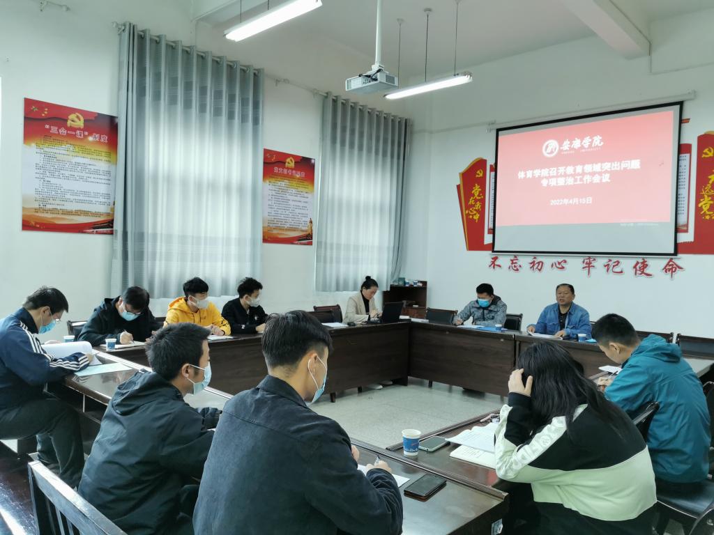 为贯彻落实省委教育工委《陕西教育领域突出问题专项整治工作方案》要求,根据太阳集团tyc539macau《陕西教育领域突出问题专项整治专题学习周工作安排》,公司于4月15日上午在体育馆1楼会议室召开陕西教育领域突出问题专项整治专题理论学习会。公司党总支书记高立平、教学副经理郭西魁、学工人员、行政人员参加了会议。会议由高立平书记主持。