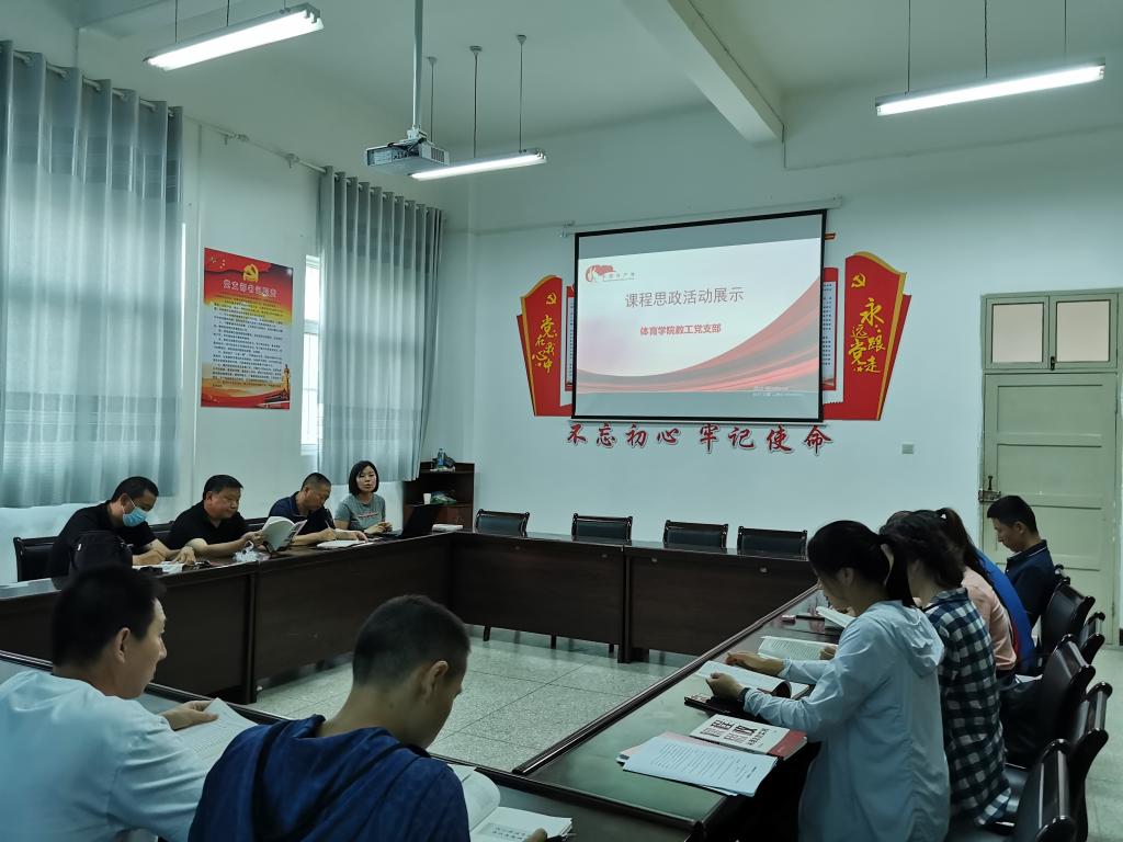 6月8日下午,教工党支部在太阳集团tyc539macau会议室开展了“课程思政”主题党日活动,全体教工支部党员参加了活动,本次活动由教工党支部书记刘芹同志主持,体育公司党总支书记高立平同志也列席了会议。