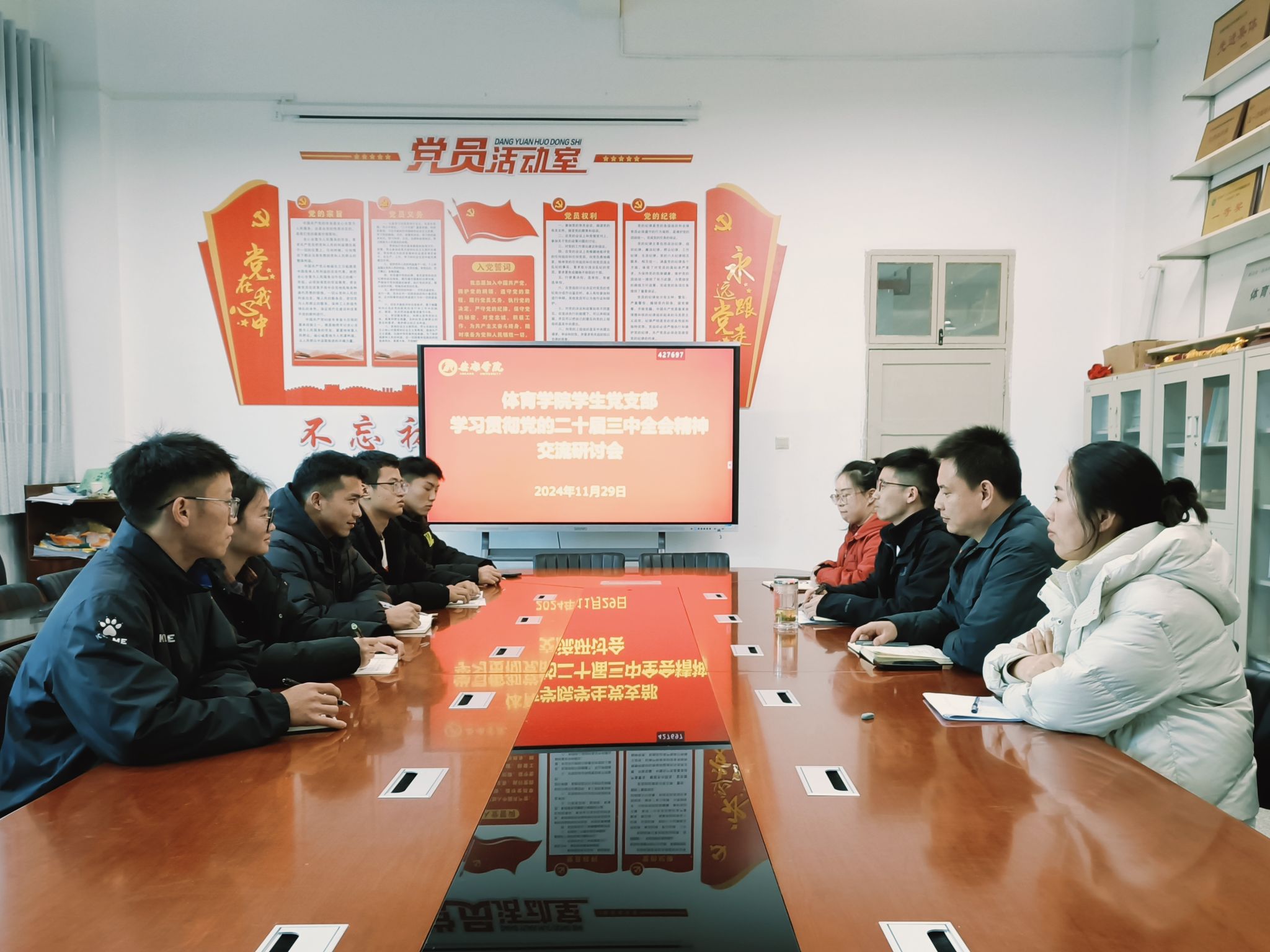 会前,支委精心筹备,收集整理全会相关资料分发给党员,并要求党员结合体育专业提前思考。会上,组织委员赵娇艳带领党员集中学习全会重点内容,使党员们对全会精神有了更系统的认识。
