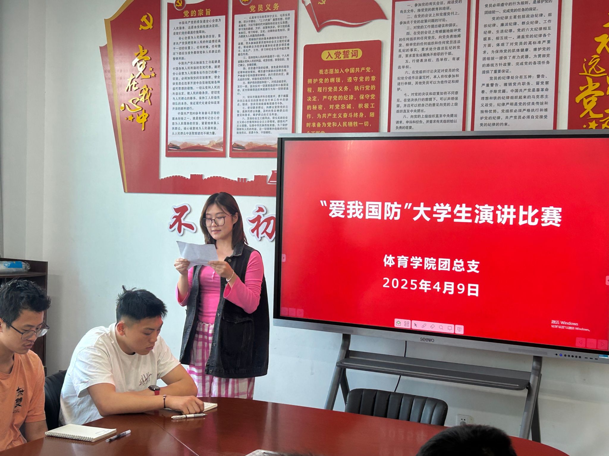 据悉,演讲比赛结束后,员工支部向全体党员传达了公司《关于在全校开展深入贯彻中央八项规定精神学习教育的实施方案》精神,组织学习了《什么是中央八项规定》《什么是中央八项规定精神》,观看了相关教育视频。最后,在宣传委员康梦瑶老师的带领下,新接收的党员同志面对党旗,庄严宣誓,活动在热烈的氛围中圆满结束。