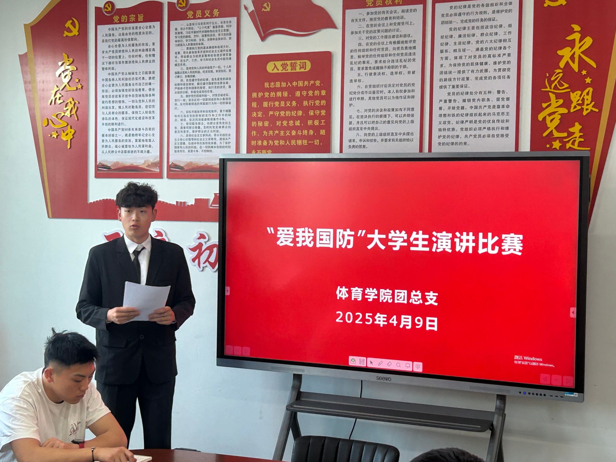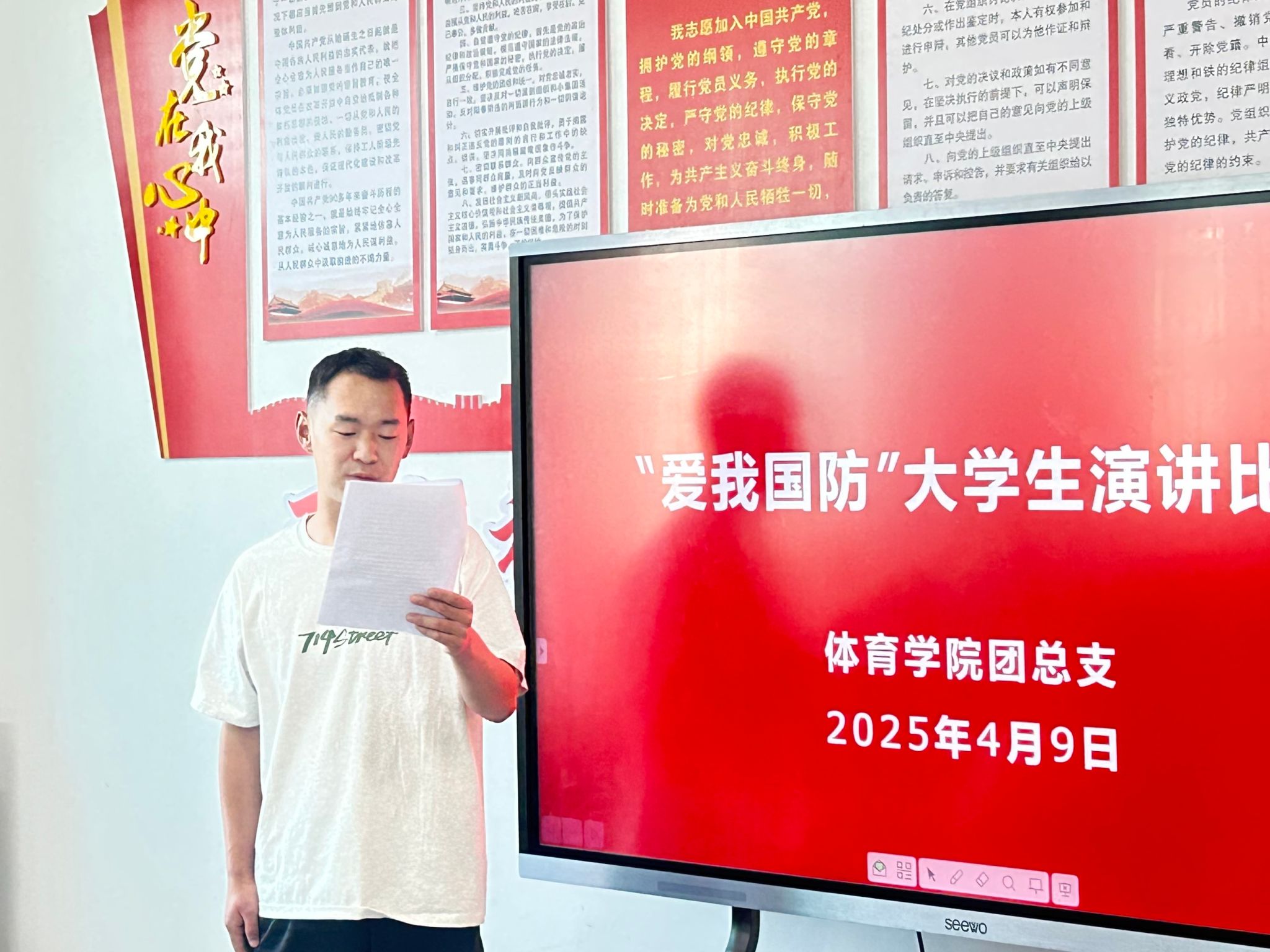 青春热血铸军魂,国防强音振人心。为深入贯彻落实习近平总书记关于加强全民国防教育的重要指示精神,充分发挥党建引领作用,推动党团共建深度融合,4月9日,太阳集团tyc539macau员工党支部、团总支成功举办“爱我国防” 主题演讲比赛。进入决赛的4名选手同台竞技,以铿锵话语诠释新时代青年的国防担当,为在场师生带来一场震撼心灵的精神洗礼。