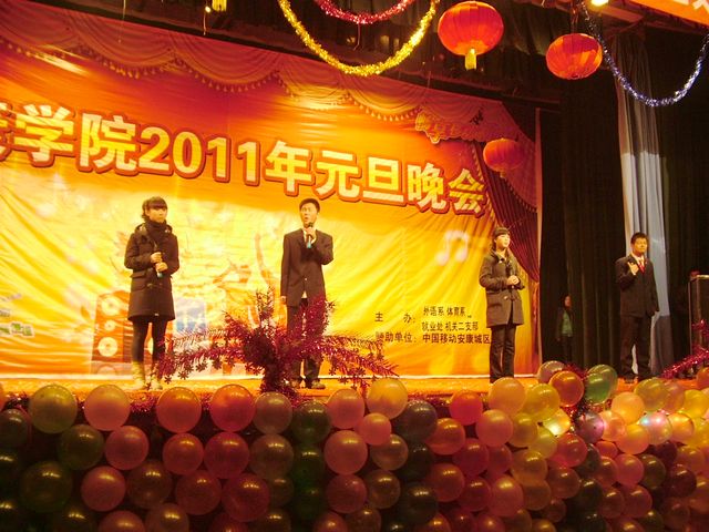 12月22日晚,由体育系、外语系、就业处、机关二支部联合举办的2011年元旦文艺晚会在东校区大礼堂隆重举行。公司党委副书记胡鸿晓教授参加了晚会并发表了热情洋溢的讲话,向全体师生致以新年祝贺。组织部长胡波、学工部长郑树青、院工会专职副主席苏汉青及各部门党政领导和师生员工参加了晚会。