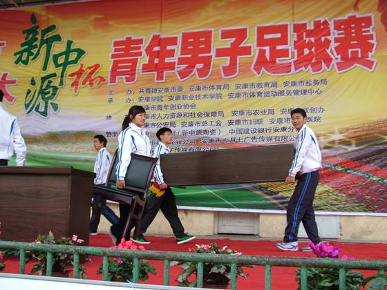 2012年11月1日,由安康市体育局、共青团安康市委等单位主办,公司承办的安康市喜迎十八大新中源杯青年男子足球赛在江南校区足球场隆重开幕。来自安康市各县区、事企业单位的十四支足球队济济一堂,相聚在太阳集团tyc539macau足球场,充分展现出团结进取、蓬勃向上的安康青年精神风貌,以满腔的热情喜迎“十八大”的召开。安康市人大常委会副主任吴应德、安康市政协副主席徐铁军、安康公司党委副书记胡鸿晓等领导出席了开幕式。安康团市委副书记梁鸿主持开幕式。