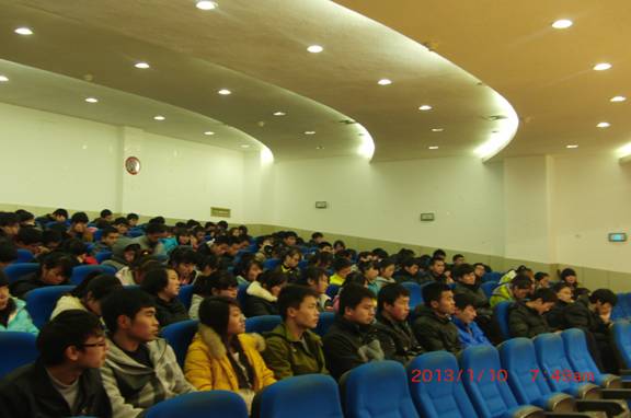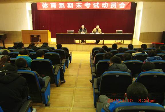 2013年1月10日晚19:30,体育系2012—2013学年第一学期期末考试动员会在1号教学楼6楼学术报告厅举行,体育教育专业10、11、12级两百余名员工参加了本次动员会。