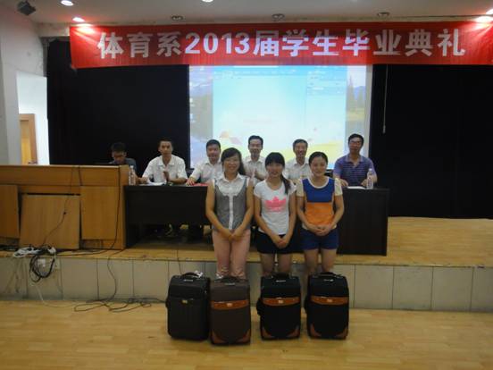 2013年7月6日下午14:30分,我系2013届员工毕业典礼暨学位授予仪式在1号教学楼报告厅隆重举行。体育系教师、全体员工以及特邀的公司党委副书记、纪委书记闵小平教授、公司办学顾问熊正英教授共二百余人出席了典礼,典礼由系办公室主任黎远军老师主持。