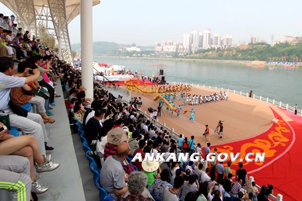 本次演出自4月初编排,动用了我系几乎所有一、二年级男生,是我系员工参加此类活动人数最多的一次,同时也是表演任务最重的一次。在距离正式演出只有13天、已经完成2个重要节目排练的情况下,我系同学应本届“龙舟赛”组委会的安排,以高度责任感又承担起在当时几乎完成不了的《龙头亮相》的表演任务。参与演出同学们及工作人员尽职尽责,以干克难,发扬不怕累、不畏难的体育精神,认真排练,他们的坚毅精神,得到了安康编导老师的肯定。值得一提的是我系13级女生在没有安排演出任务的情况下,主动为参与演出同学整理服装道具,保管私人物品,无不体现着集体主义精神。本次龙舟节的顺利演出为我系、公司赢得了荣誉!