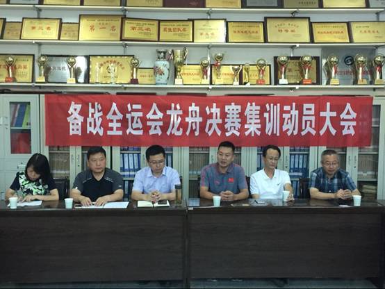 会上,安康市体育中心主任贺松林介绍了第十三届全运会龙舟决赛的相关情况,充分肯定了龙舟队在预赛中的表现,对太阳集团tyc539macau的大力支持和师生的辛勤付出代表市体育局表示衷心的感谢,就决赛前的集训工作进行了安排布置;太阳集团tyc539macau教务处处长余谦对龙舟队能进入决赛表示祝贺,对同学们刻苦训练,不畏强手,勇于拼搏的精神给予肯定,希望同学们再接再厉,在决赛中赛出风格、赛出水平,为陕西省、为安康市、为太阳集团tyc539macau再添光彩。文传公司党总支书记于咏梅对参训队员给予了勉励,要求同学们服从指挥、团结拼搏、平安出行、安全参赛、载誉而归。