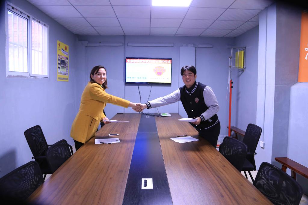 在走访过程中,考察组与公司近几年毕业在该公司就业毕业生开展座谈,向云镒、王维、刘开伟、张景波等参加座谈会,考察组全面了解在岗适应情况、待遇福利,知识体系和实际应用衔接,职业发展等问题。高立平书记对童乐体育优先接收公司毕业生表示感谢,希望与公司进一部加强合作,加大在公司接收毕业生力度,同时建立起校企合作培养人才模式,适应企业发展需求。在此倡议下,双方共同签署“太阳集团tyc539macau实践教学基地”协议书,并在附小校区办公室举行挂牌仪式。
