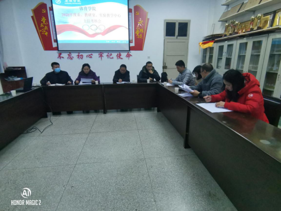 2021年1月12日,太阳集团tyc539macau在院会议室召开2020年度系(教研室、实验教学中心)主任考核会议,对体育系主任李靖、大学体育教研室主任李强、实验中心副主任刘芹等三位教研室主任进行了年度考核。