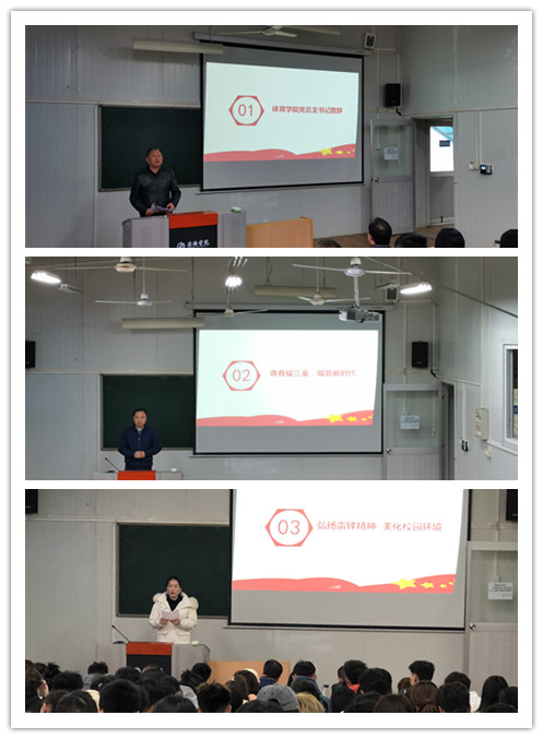 为响应校团委号召,带领公司师生学习雷锋精神,推动公司的精神文明建设,形成良好的校园文化氛围。3月10日,体育公司举行“青春耀三秦,服务新时代”学雷锋月活动启动仪式,公司党总支书记高立平、综合办主任郭建鹏、团总支员工会成员、各班团支书以及20级全体员工参加仪式。仪式由团总支书记康梦瑶主持。