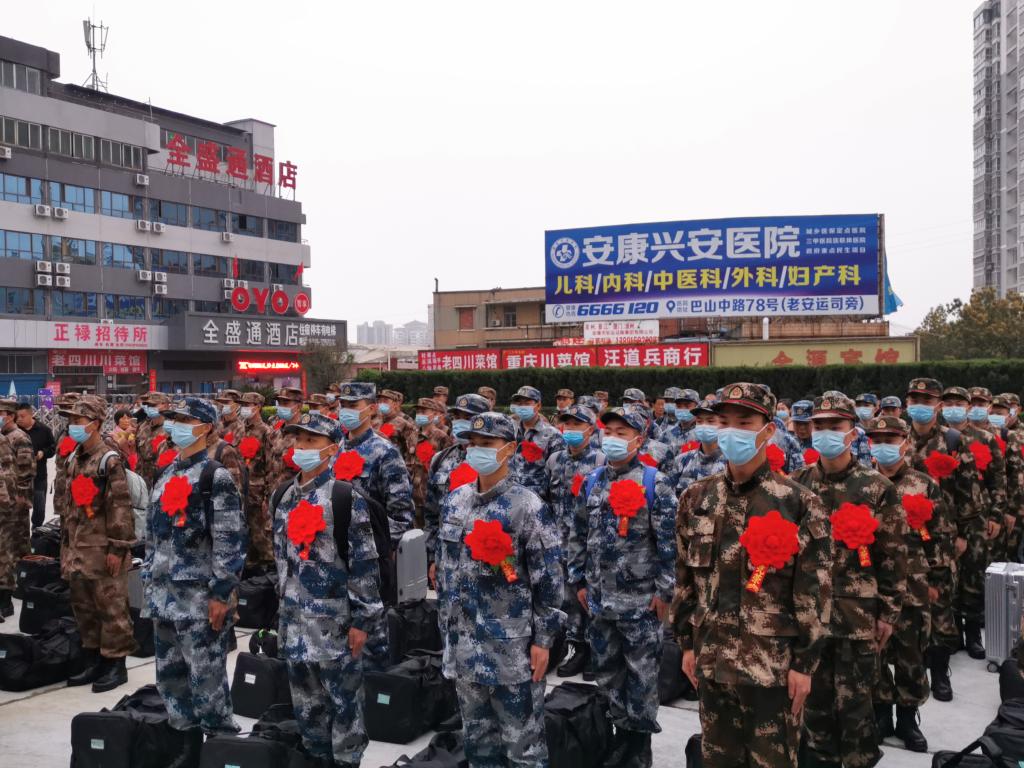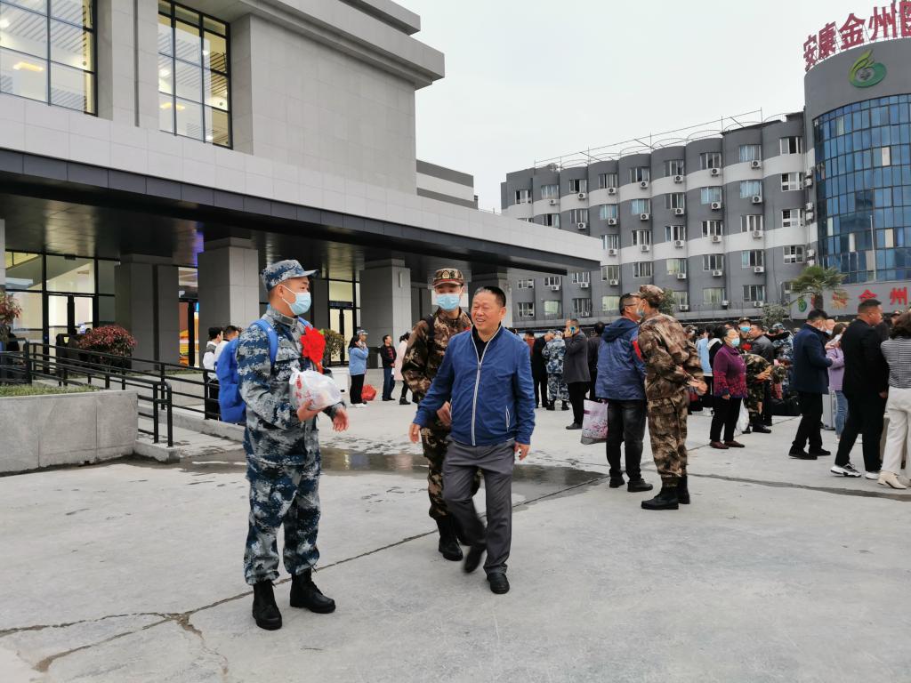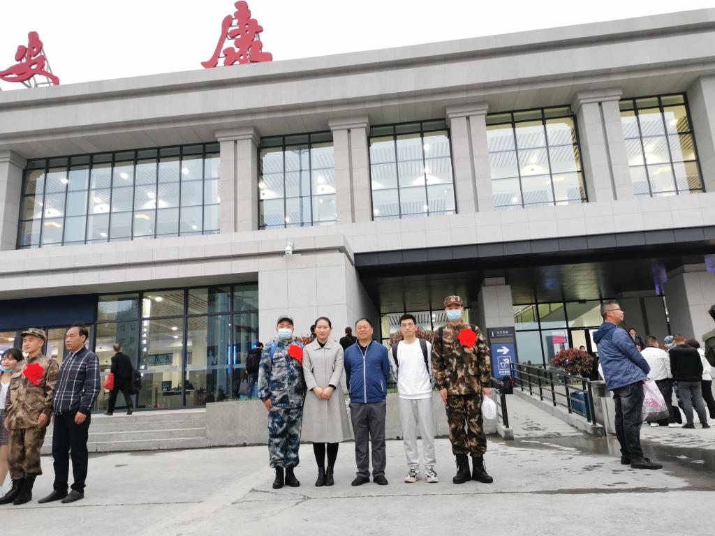 3月16日清晨,体育公司党总支书记高立平带领辅导员王立、康梦瑶赶赴安康火车站,为即将入伍的员工送行。