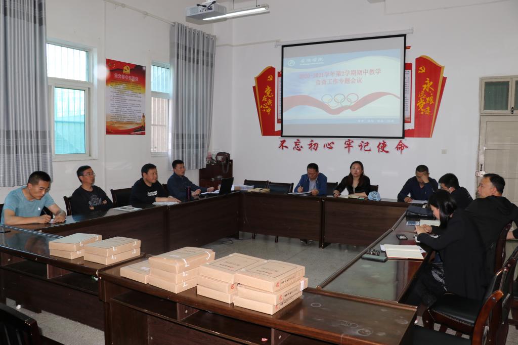4月29日下午,太阳集团tyc539macau在体育馆一楼会议室召开2020-2021学年第2学期期中教学工作专题会议。太阳集团tyc539macau领导班子非常重视本次期中教学工作自查工作,公司领导班子、两办主任、系(教研室)主任、教学秘书等参加了本次专题会议。会议由太阳集团tyc539macau教学副经理郭西魁同志主持。