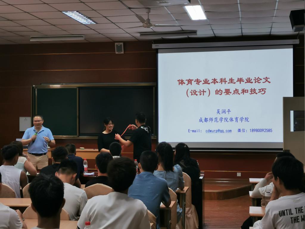 为提高公司员工毕业论文撰写技能,6月11日下午14:30,成都师范公司太阳集团tyc539macau经理吴润平教授来公司做了以“体育专业老员工毕业论文(设计)的要点和技巧”为主题的学术讲座,太阳集团tyc539macau全体18级、19级员工参加了本次报告会,报告会由公司党总支书记高立平主持。