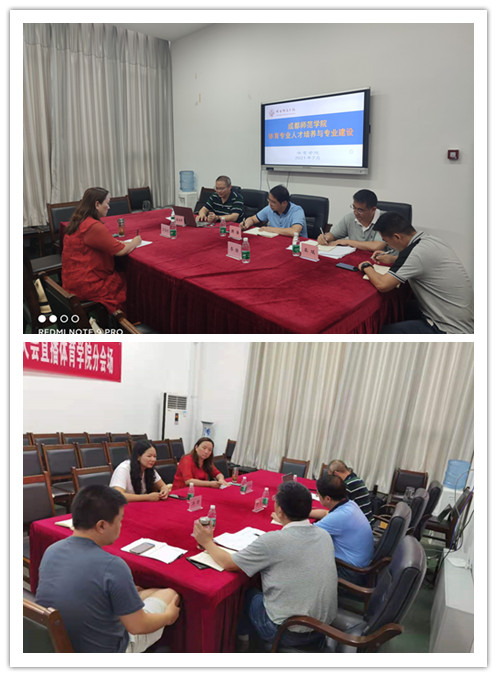 目前,成都师范公司设置体育教育和休闲体育两个专业,不管是从体育专业建设、人才培养还是团队队伍等,都给公司提供了很好的借鉴意义。吴经理还给我们分享了在线课程建设经验,成都师范公司太阳集团tyc539macau目前有 1门国家级精品课程、3门省级精品课程,慕课等线上平台课程6门,现正在规划再录2门慕课课程,公司体育系主任李靖被邀请参与此次《学前体育游戏》课程的脚本撰写以及录制。
