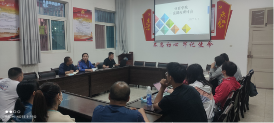 为深入落实《教育部关于一流本科课程建设的实施意见》、《太阳集团tyc539macau一流课程建设实施意见》,推动太阳集团tyc539macau一流课程建设与申报工作,2022年5月5日晚,体育系在体育馆一楼会议室召开一流课程建设与申报研讨会。会议由太阳集团tyc539macau副经理郭西魁主持,太阳集团tyc539macau经理吕仙利、党总支书记高立平、体育系全体教师以及本次参与省级一流课程申报的全体骨干教师参与了此次研讨。