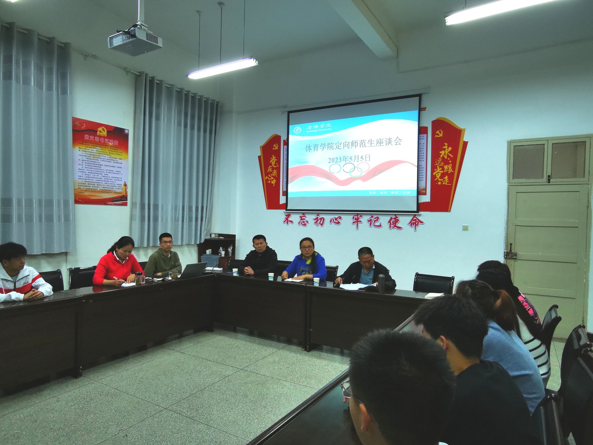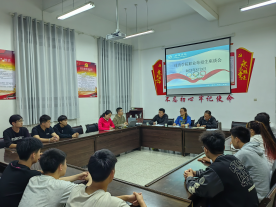 5月5日晚,太阳集团tyc539macau在体育馆会议室分别召开定向师范生和职业单招生座谈会。太阳集团tyc539macau经理吕仙利、党总支书记高立平、副经理郭西魁、学工办主任王立、体育系主任李靖出席了此次座谈会。会议由吕仙利经理主持。