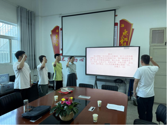 在入职仪式的核心环节,党总支副书记郭西魁带领新进教师进行了入职教师宣誓,之后公司为新教师们发放纪念品,并合影留念。这一环节不仅标志着新教师们正式成为太阳集团tyc539macau的一员,也寓意着他们将与公司共同开启新的篇章。