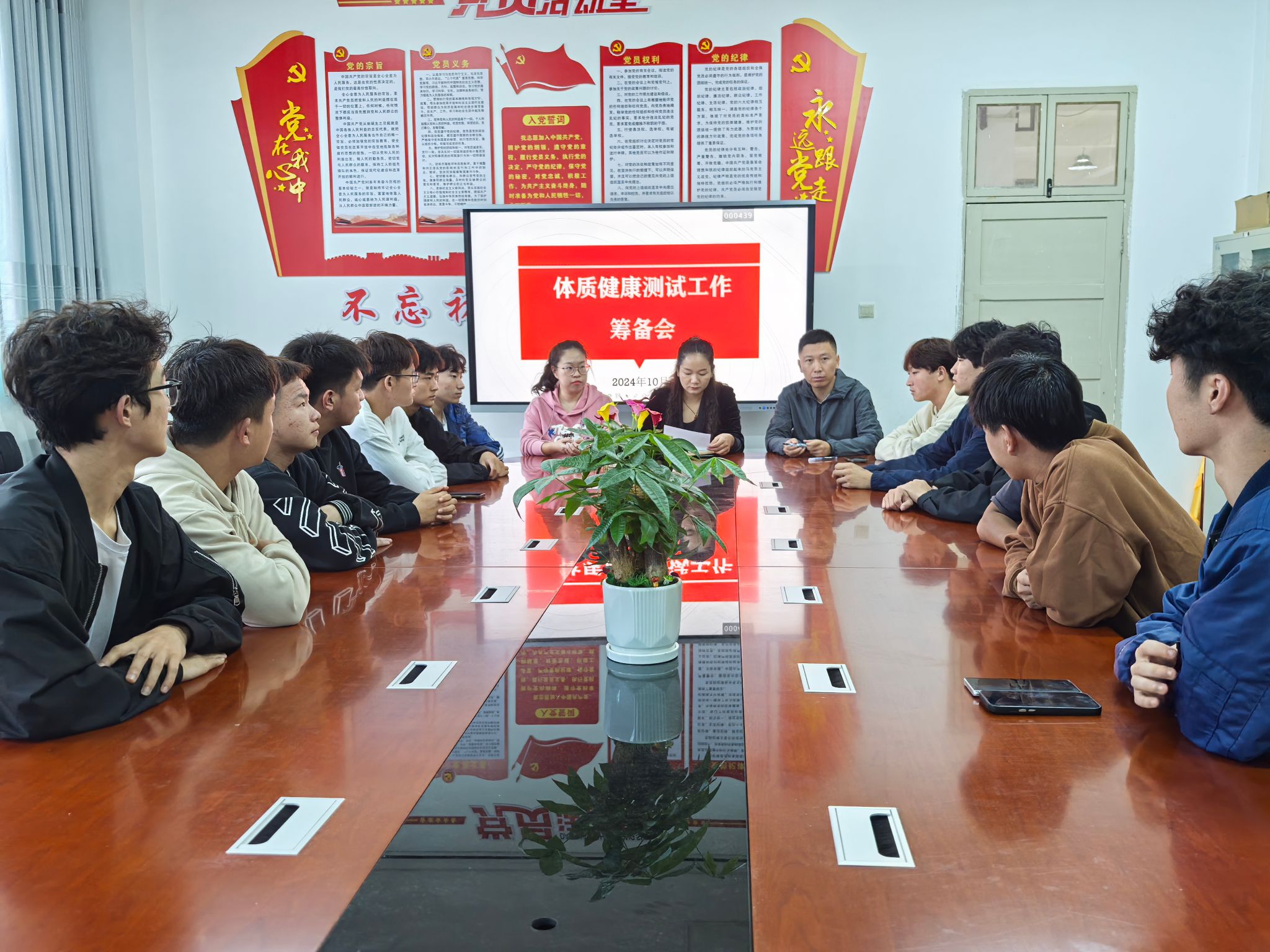 会议伊始,体质健康测试工作负责人张凯从设备维护、设备调试、异常成绩处理、应急方案执行等方面进行了讲解和说明,要求所有参加测试的工作人员务必参加设备使用培训,及时调整设备问题,对参加体质健康测试工作人员进行了任务分工,坚持“以老带新”的原则,明确各组职责。