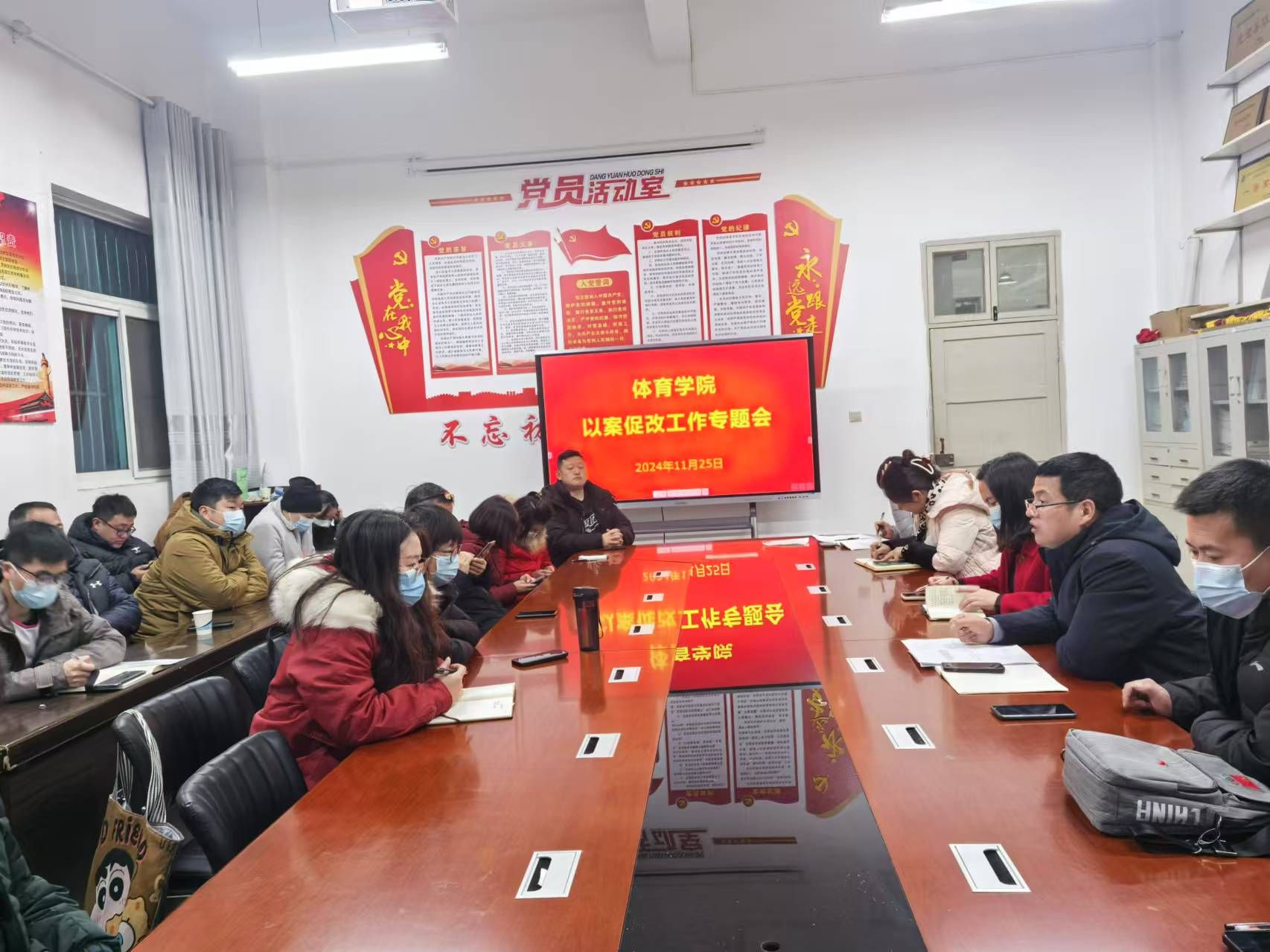 为深入贯彻落实公司以案促改工作方案要求,促进干部履职尽责、担当作为,全面提升员工管理、隐患排查、风险防控、舆情处置的能力与水平。2024年12月25日,体育公司党总支在体育馆1楼会议室召开以案促改教育专题会,公司领导班子、全体教职工参加会议,会议由党总支书记韩晔主持。