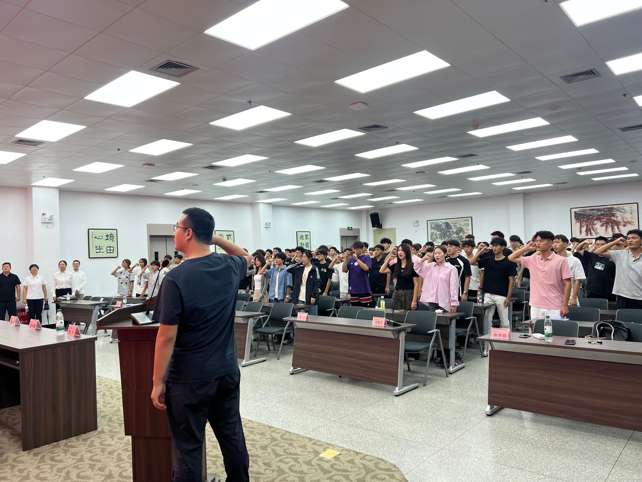 典礼最后,在学工办主任许明老师的带领下,全体新生庄严宣誓:“尊重师长,团结同学,严守校规校纪,培养良好品德;体文双修,德技相长,顽强拼搏,超越自我;为自己的梦想努力,为公司的荣耀奋斗,不负青春,不负韶华!”誓言铿锵,掷地有声,充分展现了2025级新生昂扬向上的精神风貌和笃行不怠的决心。