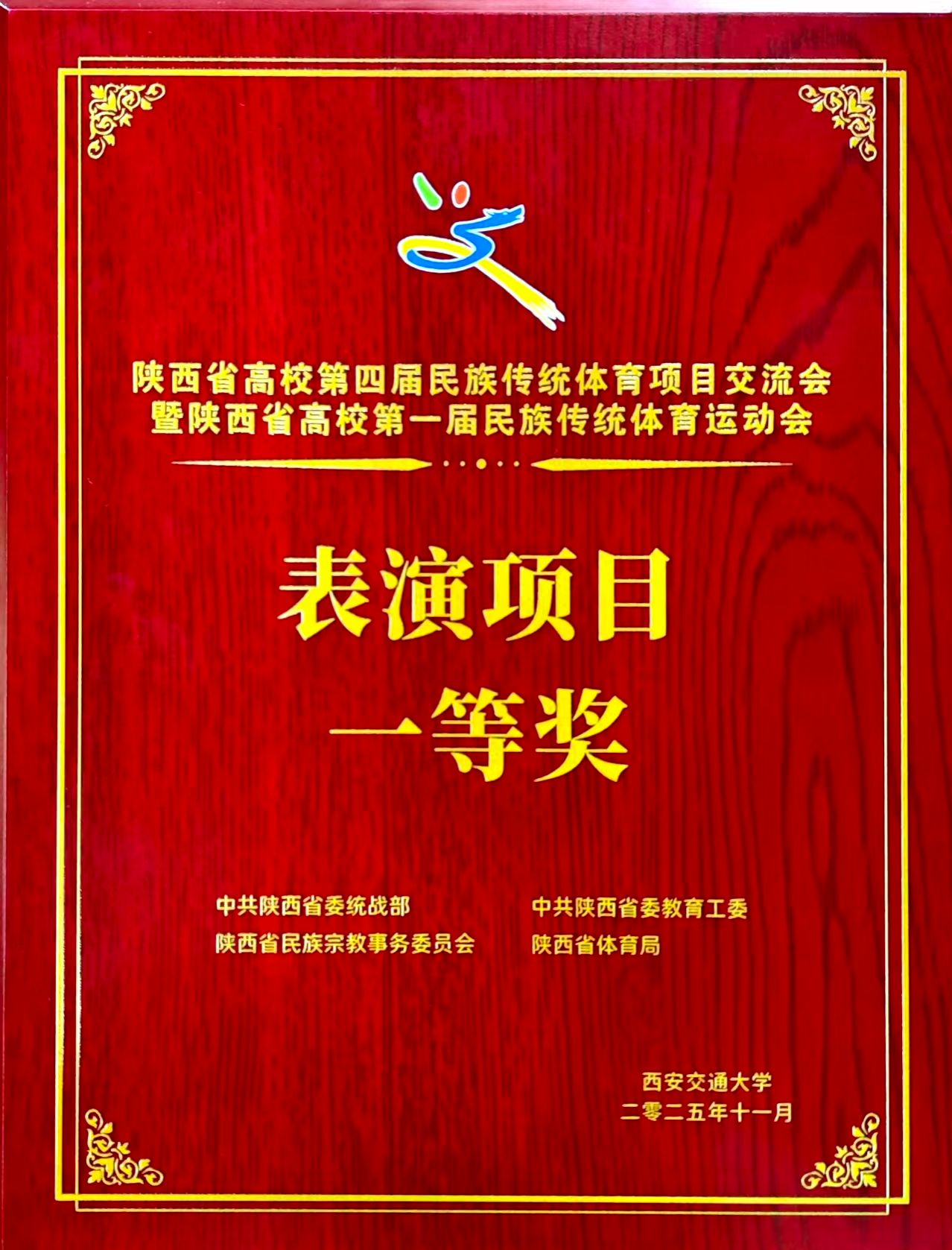 11月8日,由陕西省委统战部、陕西省委教育工委、陕西省民族宗教事务委员会、陕西省体育局联合主办的陕西省高校第四届民族传统体育项目交流会暨陕西省第一届民族传统体育运动会圆满落幕。公司武术队参加展演的太极扇项目获得一等奖,板凳龙项目获得优秀奖。
