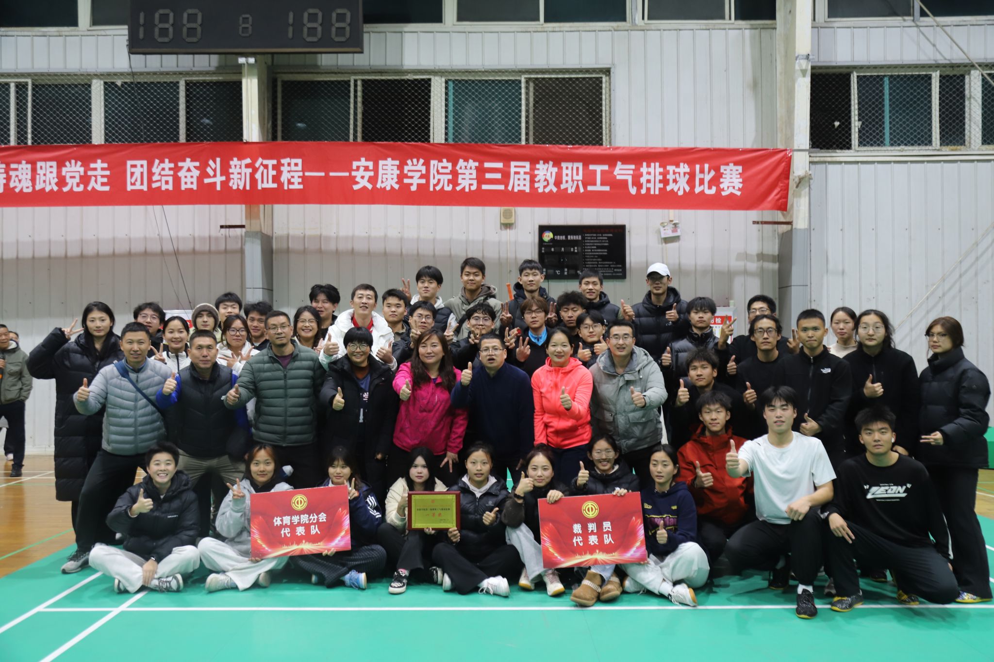 12月2日晚,由校工会主办,太阳集团tyc539macau与工会文体委员会联合承办的“中国梦、劳动美、凝心铸魂跟党走、团结奋斗新征程”太阳集团tyc539macau第三届教职工气排球比赛,在江南校区体育馆圆满结束。经过多轮激烈角逐,太阳集团tyc539macau分会凭借出色的整体发挥和团队协作,最终夺得本届比赛一等奖。