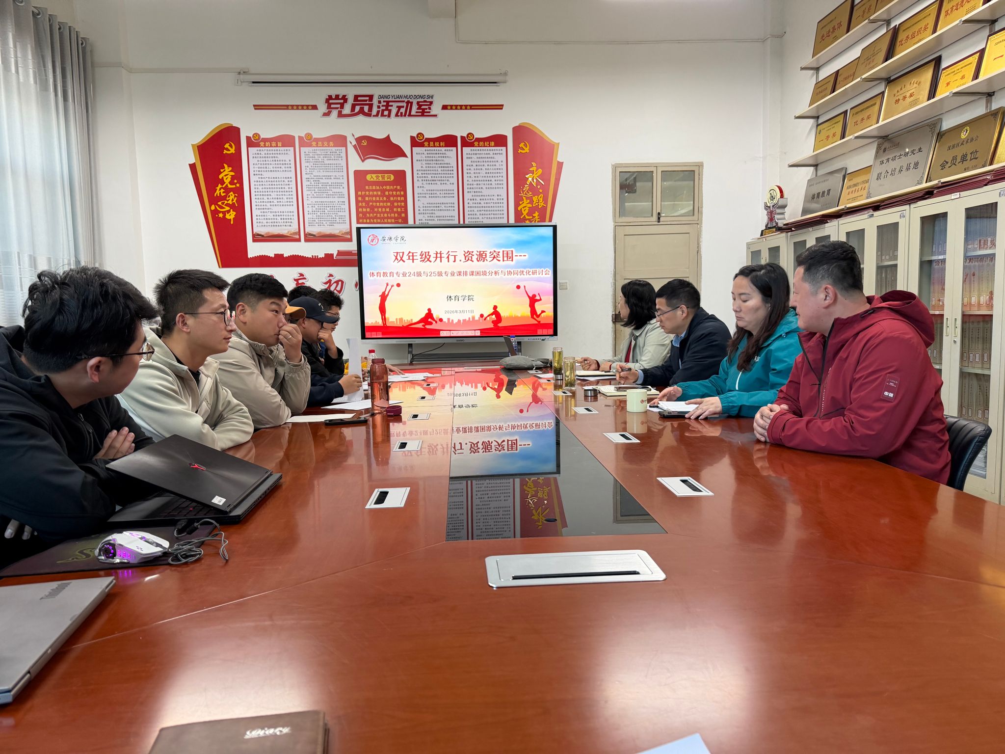 3月11日下午,体育系在太阳集团tyc539macau会议室组织召开“双年级并行·资源突围——体育教育专业24级与25级专业课排课困境分析与协同优化研讨会”,会议由体育系系主任廖建发主持,太阳集团tyc539macau专业课教师参加了本次研讨会。