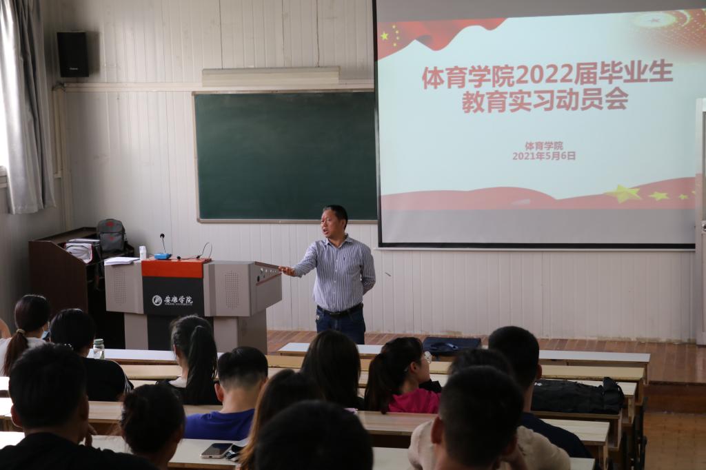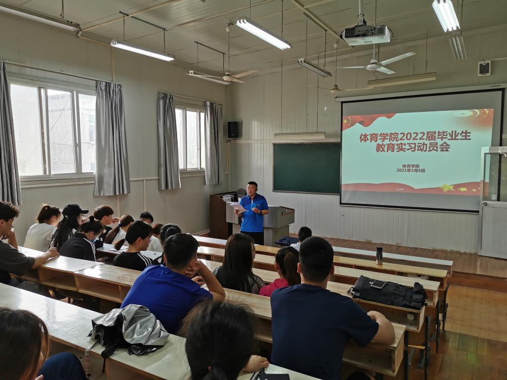 为不断提高体育教育专业员工综合素质和教学技能,推动一流专业发展,5月6日下午,太阳集团tyc539macau在6405教室召开2022届毕业生教育实习动员大会。体育公司党总支书记高立平、教学副经理郭西魁、学工办副主任王立、2022届全体毕业生参加了会议,会议由王立主持。