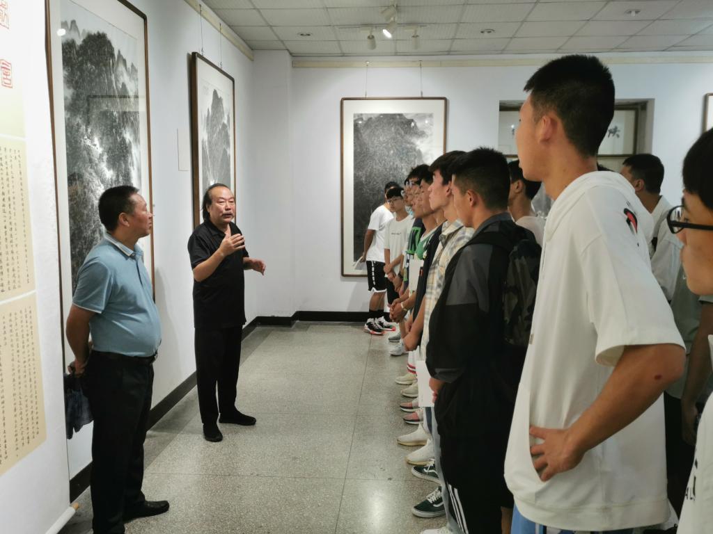 首先,图书馆的段昌华老师为新生讲解入馆须知、注意事项、图书分类知识和馆藏布局等重要事项。接着,新生入馆教育讲解志愿者分别带领各班参观,详细介绍了图书馆的书籍资料与借书流程,引导新生们遵守图书馆的各项规章制度。其次,陕南画院经理章长青带领同学们参观了陕南画院。简要介绍了展览作品的基本情况,对作品的作者、创作思路、艺术手法等进行详细的说明,通过专业解读、详尽解释为同学们拓展了视野、丰富了知识。紧接着,在新生入馆教育讲解志愿者带领下,依次参观陈少默纪念馆、安康方志馆。从馆藏作品中感受家国情怀,品味生活百态,了解安康文化源流。
