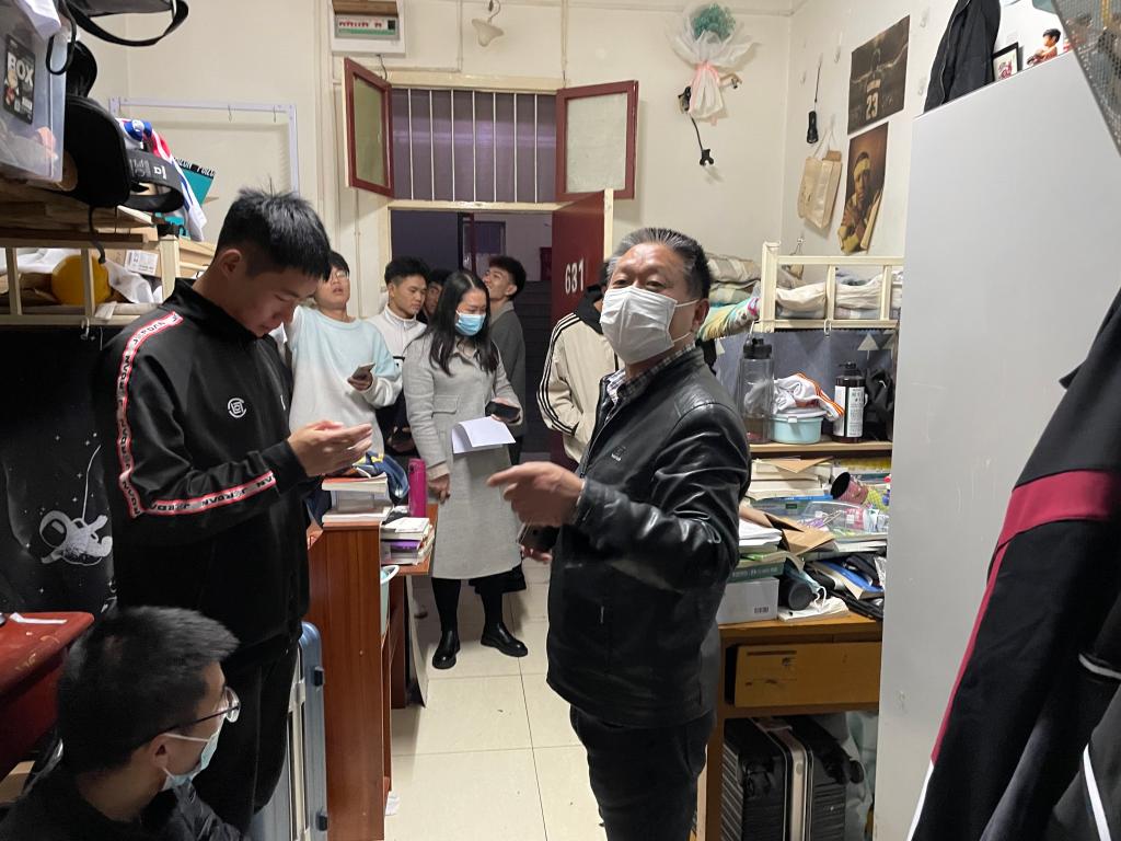 加强员工宿舍管理,营造平安有序的校园环境。2021年10月27日晚,体育公司党总支书记高立平,学工办副主任王立,团总支书记康梦瑶以及员工会成员对全院员工宿舍进行了地毯式摸排。