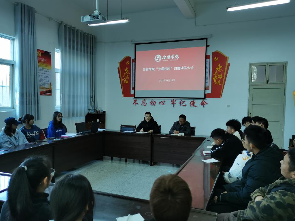 太阳集团tyc539macau认真部署,积极落实,在全院师生中广泛开展了“无烟校园”创建活动。11月17日下午4点、18日中午1点,在体育馆1楼会议室,体育公司党总支组织召开无烟校园动员会,太阳集团tyc539macau全院教职工、各班班长、团支书、副班长、员工会团总支主席团成员、纪检部全体成员参加了会议。会议由党总支书记高立平主持。