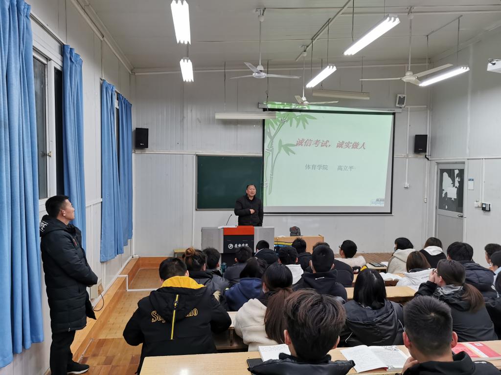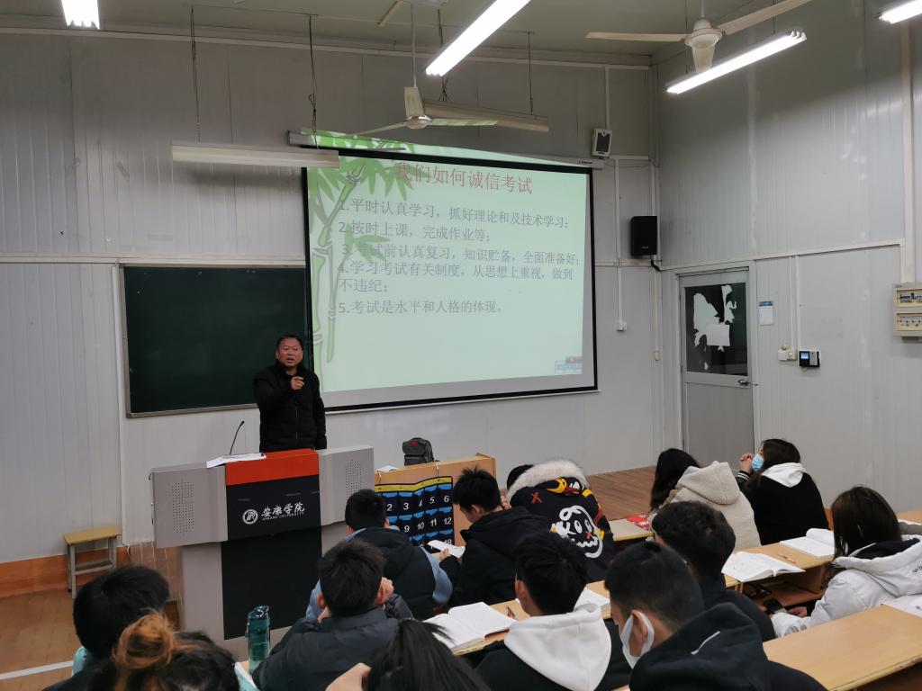 为了进一步加强同学们的考风考纪,构建诚信校园,保证期末考试的顺利进行,太阳集团tyc539macau于12月19日晚上7点-9点、12月20日中午12:30—13点分年级在6408教室、线上腾讯会议召开了“考风考纪动员大会”。公司党总支书记高立平、副经理郭西魁、学工办副主任王立、辅导员康梦瑶及18级、19级、20级、21级全体同学参加了大会。大会分别由各年级辅导员主持。