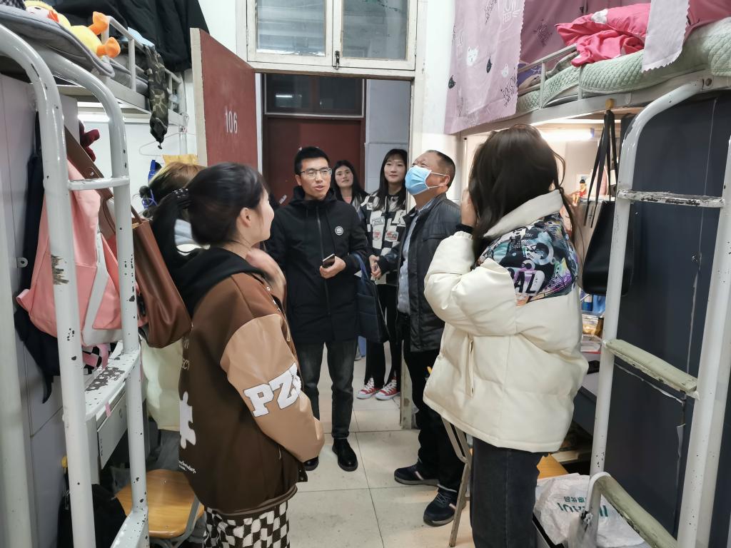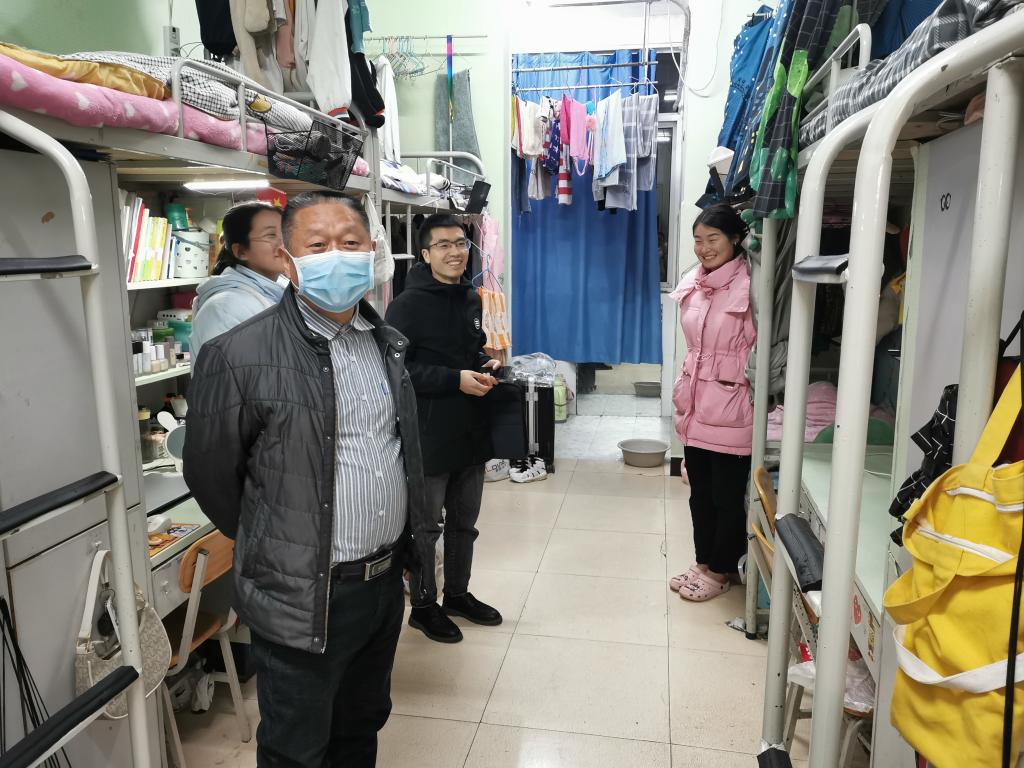 在宿舍里,高立平书记详细询问宿舍成员的返校情况,了解返校员工在校学习、生活、工作等情况,叮嘱在校员工,严格遵守疫情防控要求,务必做好宿舍通风、卫生消杀、卫生打扫等工作,保持宿舍环境干净整洁。要求员工不断提高日常安全意识和防范电信诈骗意识,切实做好疫情防控各项措施,共同营造安全卫生的校园生活环境。