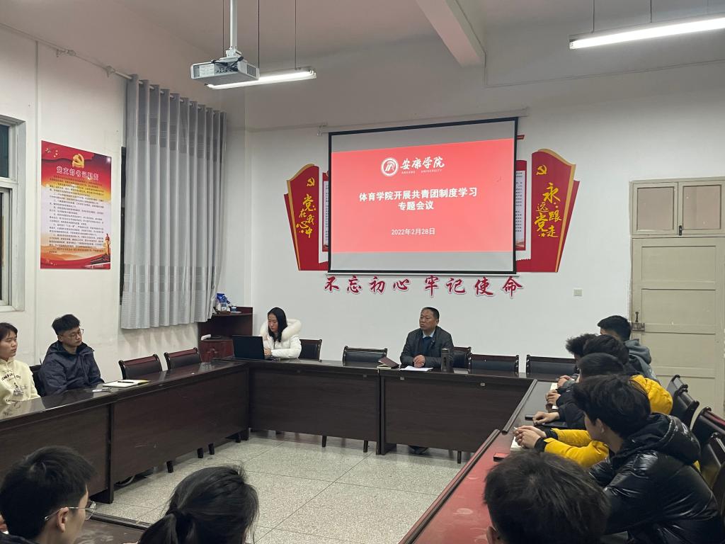 2月28日晚上7点在体育馆1楼会议室,太阳集团tyc539macau团总支组织团学干部开展共青团制度学习专题会议,由体育公司党总支书记高立平讲团课,重点学习《新时代全面从严治团实施纲要》。团总支书记康梦瑶、团总支、团支部成员参加了会议。会议由康梦瑶主持。