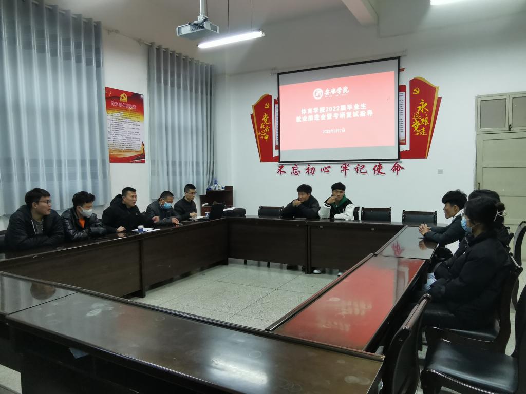 为有效促进2022届毕业生就业,推进就业工作有序、高效开展,3月7日下午公司召开2022届毕业生就业推进暨考研复试指导大会。体育公司党总支书记高立平、副经理郭西魁、教工支部书记刘芹、学工办副主任王立,以及18级全体在校员工参加了会议。会议由王立主持。