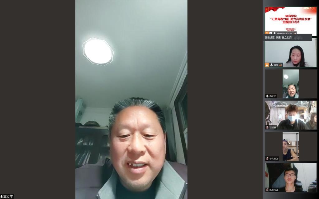 响应校团委号召,号召公司师生学习雷锋精神,推动公司的精神文明建设,形成良好的校园文化氛围。3月17日晚上7点在线上腾讯会议,体育公司举行“汇聚青春力量,助力高质量发展”学雷锋月活动启动仪式,公司党总支书记高立平、学工办副主任王立、21级全体员工参加仪式。仪式由团总支书记康梦瑶主持。