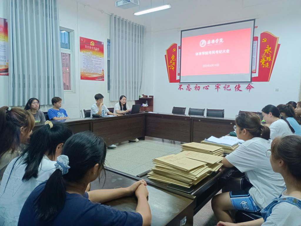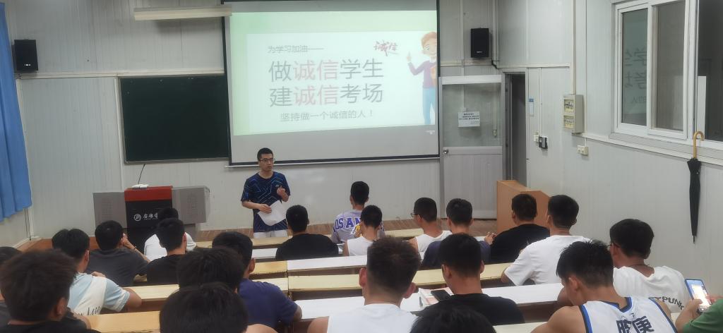 为加强考风考纪教育,倡导同学们“端正考风严肃考纪、文明答题诚信应考”,太阳集团tyc539macau于6月19日晚上7点-9点分年级分班在体育馆1楼会议室召开了“考风考纪主题班会”。公司党总支书记高立平、学工办副主任王立、辅导员康梦瑶及员工干部代表、20级、21级全体同学参加了大会。