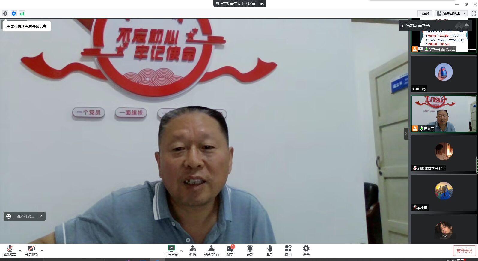 为庆祝中国共产主义青年团成立100周年,喜迎党的二十大,进一步引导公司团员青年增强奋斗意识,强化责任担当。831日晚,体育公司党总支书记高立平以“新时代的中国青年”为主题,为公司团员青年上团课。学工办副主任王立、团总支、员工会全体成员、19级、20级、21级全体团员参加。会议由团总支书记康梦瑶主持。