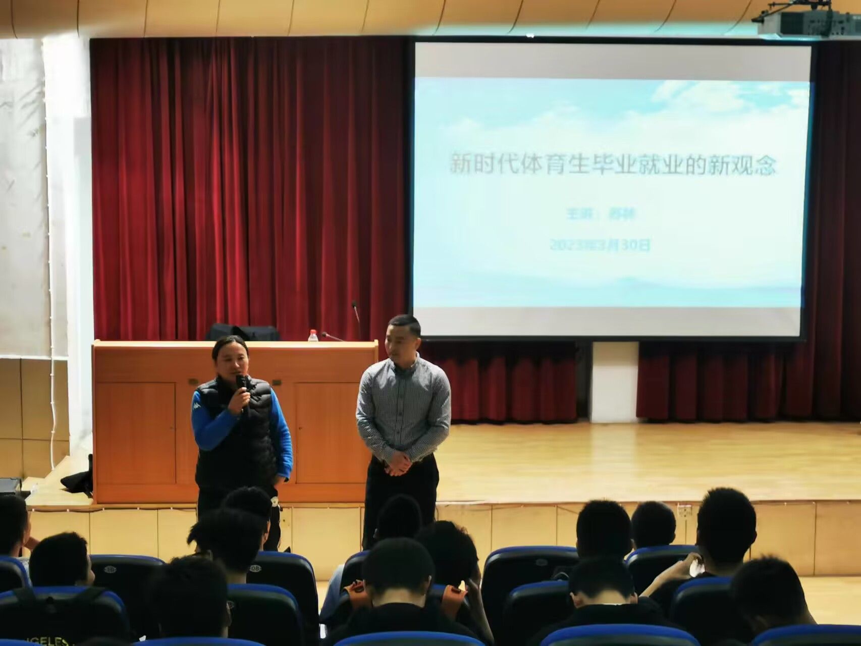 苏林从新时代体育生面临的就业形势、就业多元化、就业技能、服务意识前置化等4个方面展开,结合自己的工作、创业经历,建议老员工从自我定位与认知开始,围绕创新创业的时代背景,着眼于国家政策、社会需要、群体差异等进行职业选择;在讲到创业时,通过对典型案例的分析与讲述,使大家对创新创业有了更直观、更深刻的理解;最后他建议同学们一定要树立先就业再择业的观念,积极开创体育生就业新局面。