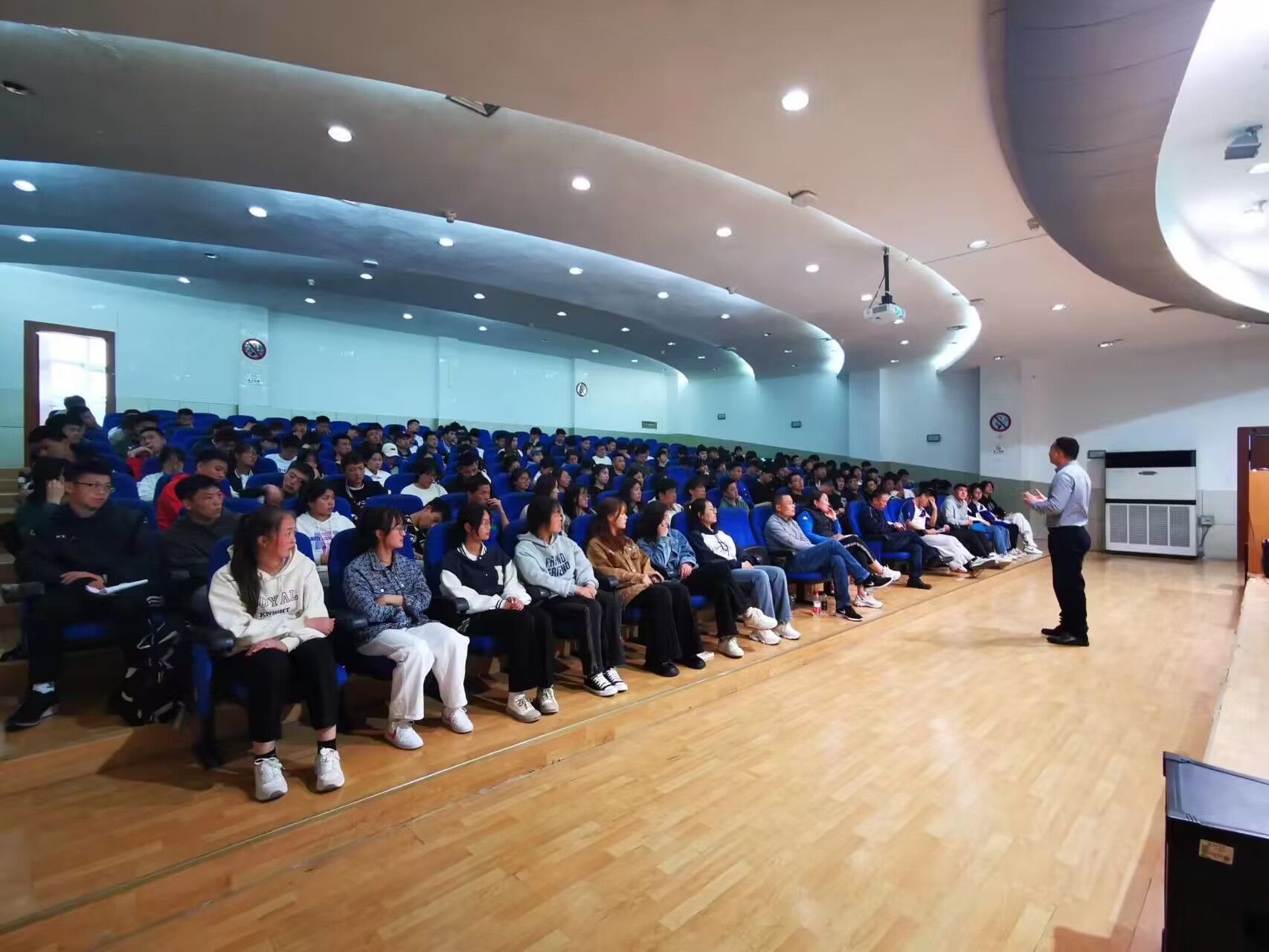为进一步拓宽公司员工的就业思路,帮助体育生树立正确的就业、择业观念,3月30日下午,公司特邀请西安瑞德体育健身有限公司总经理苏林在江南校区一号楼6楼报告厅开展“新时代体育生就业的新观念”讲座。公司党总书记高立平,经理吕仙利与公司20级、21级、22级无课员工一起聆听了讲座。整个活动仪式由毕业班辅导员康梦瑶主持。